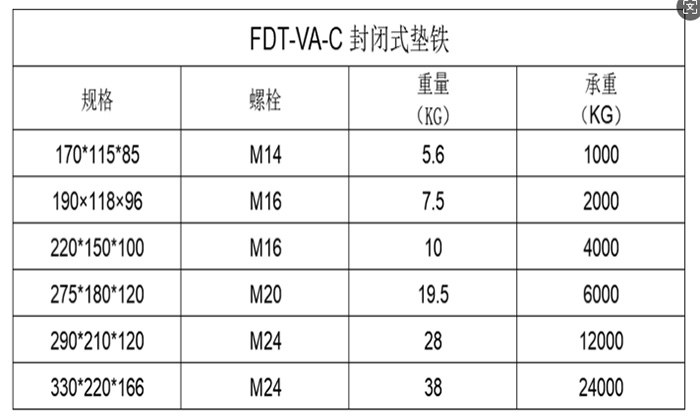 FDT-VA-C 封閉式墊鐵