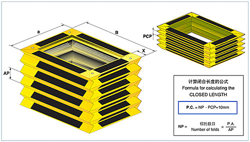 行程 =打開長度 -閉合長度                                   x=折疊高度
