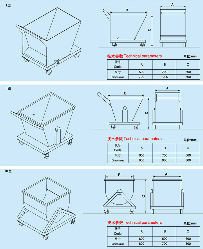 ●JXC 型集屑車(料斗)用于收集各種機(jī)床排屑裝置傳送下來(lái)的各種切屑,集屑車(料斗)底部裝有腳輪,可將切屑送出工作場(chǎng)地,便于集中清理。集屑車(料斗)分為干式與濕式兩種,干式料斗可以傾斜,將切屑倒出即可,濕式是在干式基礎(chǔ)上加過(guò)濾板,放液閥,便于切屑中的切屑液與切屑分離起到回收環(huán)保作用。可根據(jù)不同排屑量,不同用戶的要求.設(shè)計(jì)各種容積、功能的集屑車(料斗)。